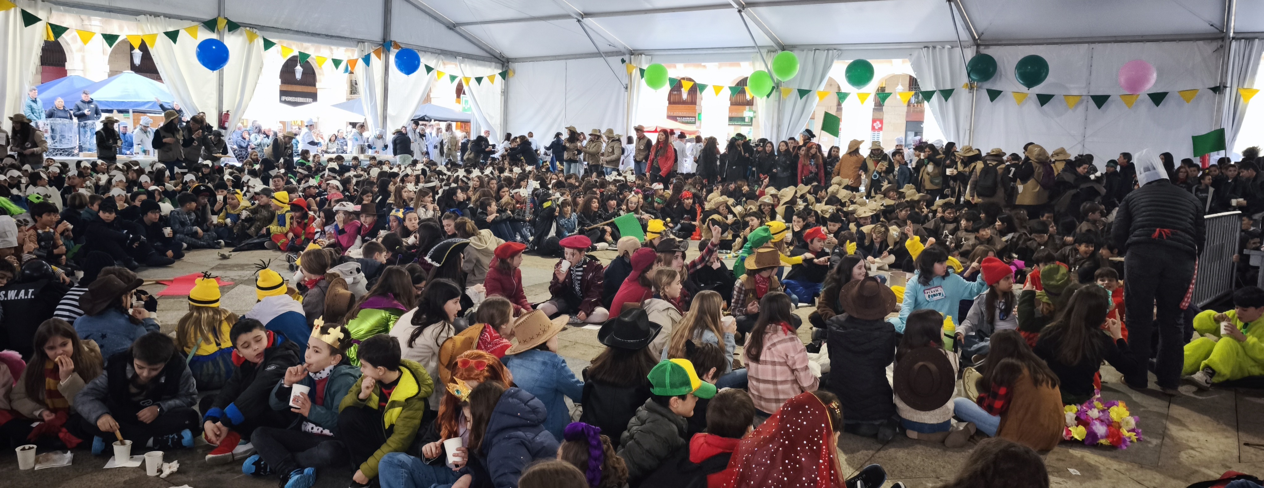 - El alumnado se ha reunido en el espacio del Casco Viejo, donde han desfilado al ritmo de la música y han disfrutado de la ya tradicional chocolatada junto al espectáculo musical “Jurassic Festa”.